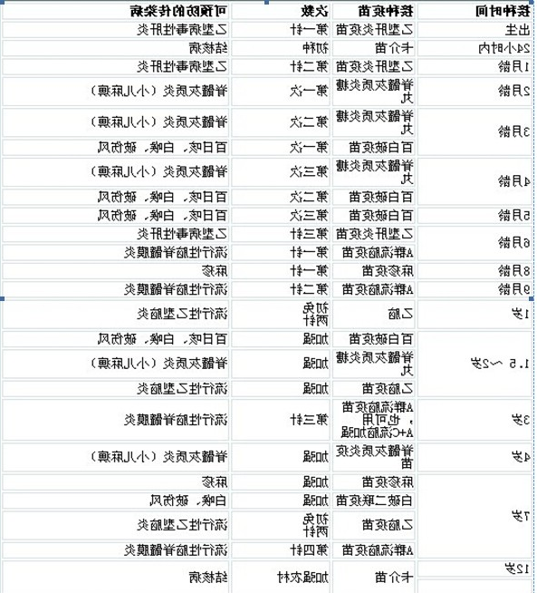 计划内疫苗(一类疫苗)是国家规定纳入计划免疫,属于免费疫苗,是从宝宝出生后必须进行接种的。计划免疫包括两个程序:一个是全程足量的基础免 疫,即在1周岁内完成的初次接种;二是以后的加强免疫,即根据疫苗的免疫持久性及人群的免疫水平和疾病流行情况适时地进行复种。