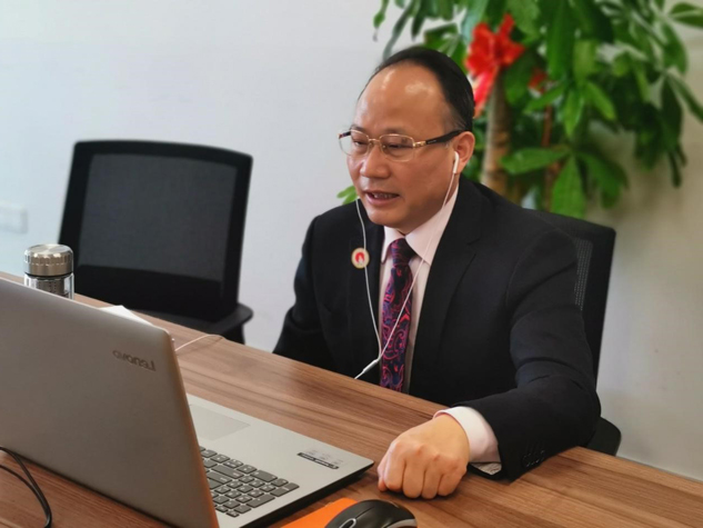 ▲刘景萍董事长通过网络参加会议